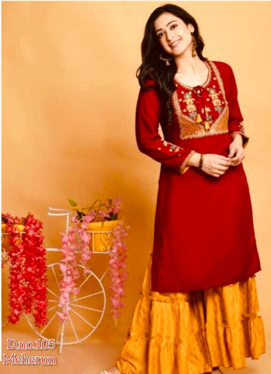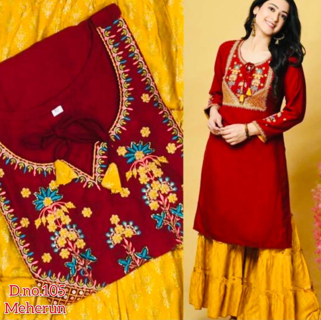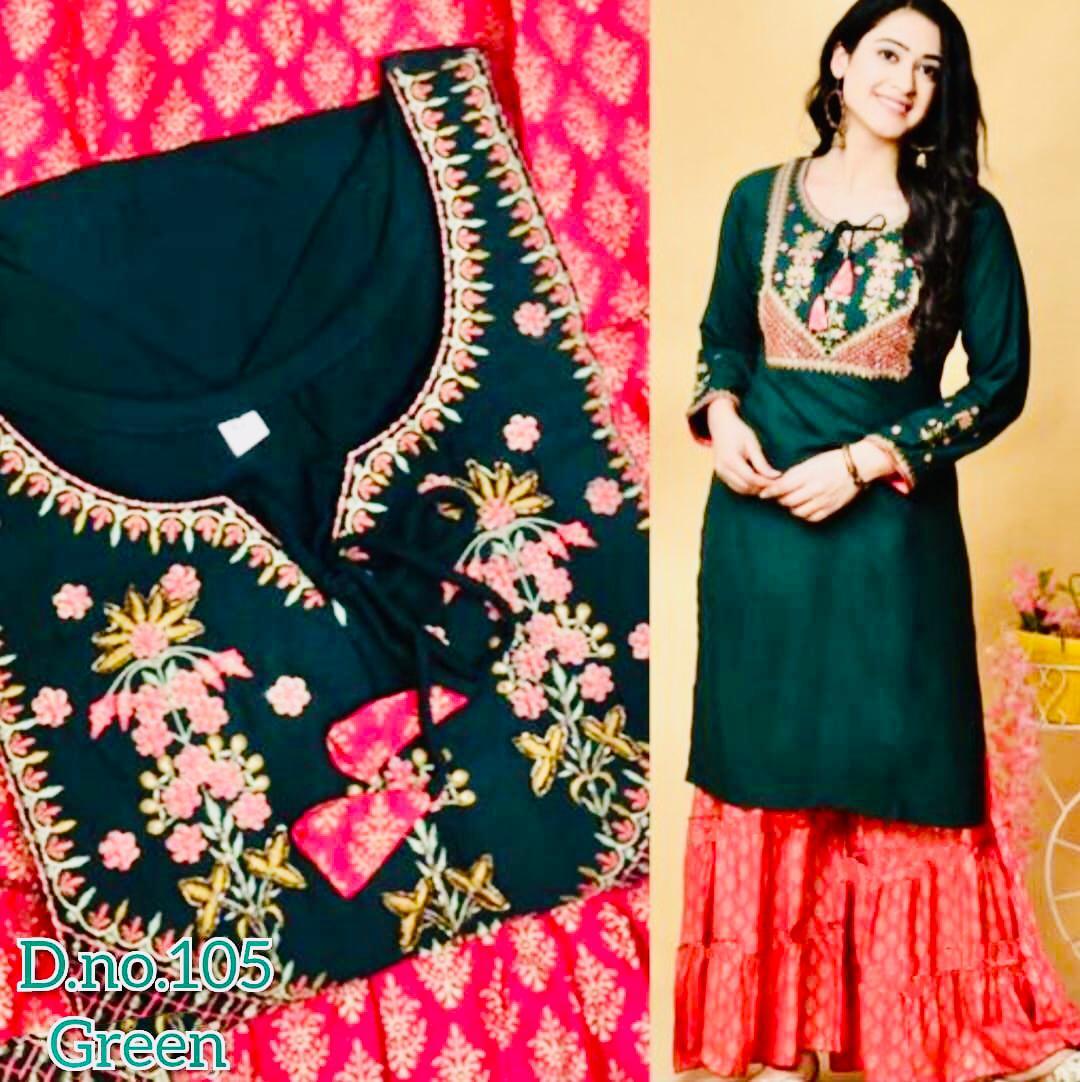 *Kurti Fabric :- 14. Kg. Riyon With Beautiful Embroidery work*